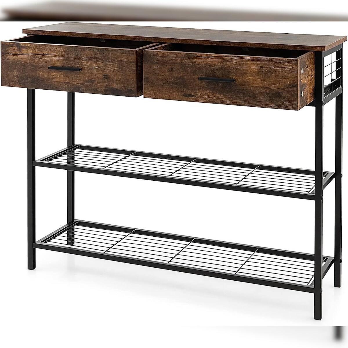 COSTWAY 100 cm Konsoletisch mit 2 Schubladen, 3-stufiger Flurtisch aus Holz, Beistelltisch mit Metallrahmen