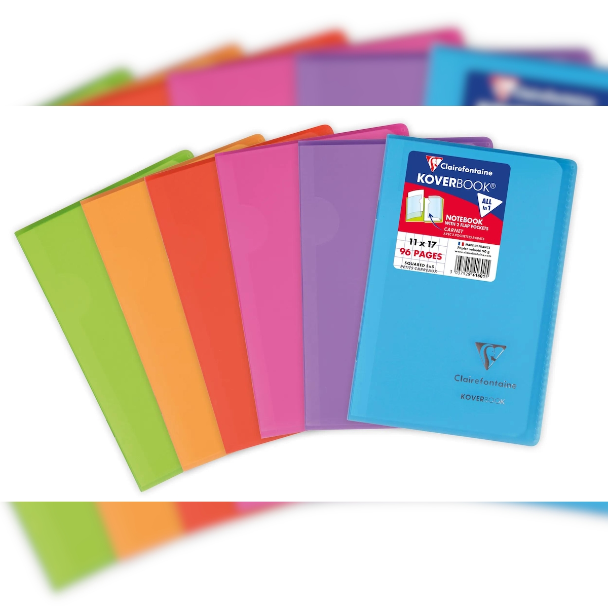 Clairefontaine 10x Koverbook Heft 11x17 cm, 48 Blatt kariert, Einband aus transparentem PP, Farben sortiert - Sortiert 941601C