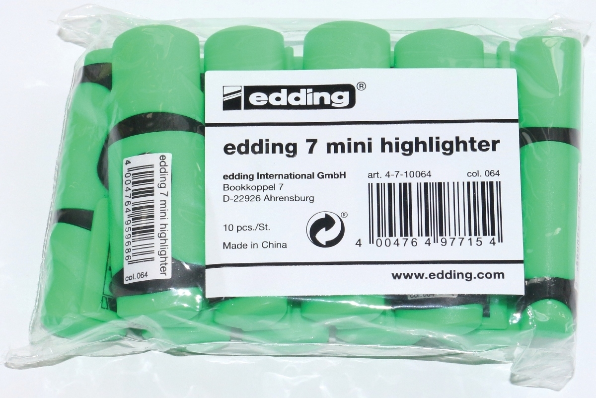Textmarker edding 7 mini highlighter 1-3 mm VE=50x10 Stück Polybeutel neongrün