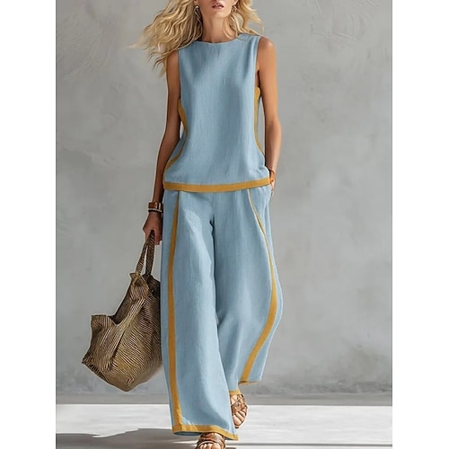 Per donna Set da due pezzi Gilet Camis Senza Maniche Girocollo Blocco di colori Moda Streetwear Casuale Quotidiano All'aperto Bianco Vino Blu marino Estate Vestibilità regolare