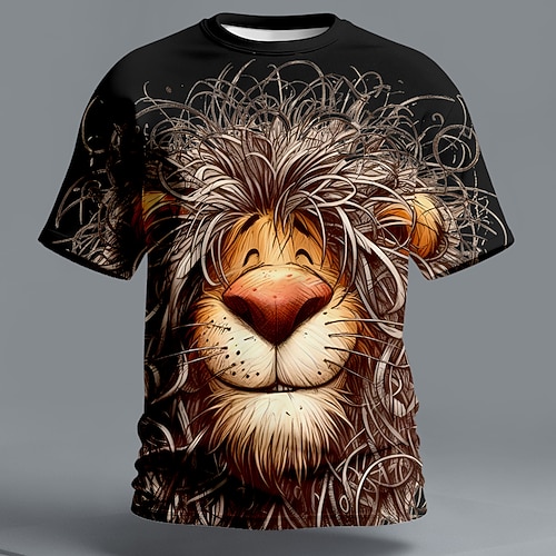 Per uomo Animale Leone Divertente Maglietta Manica Corta maglietta Stampa 3D Girocollo Camicia Esagerato Designer Feste Ferie Blu Nero Bianco Estate Primavera Abbigliamento S M L XL XXL XXXL