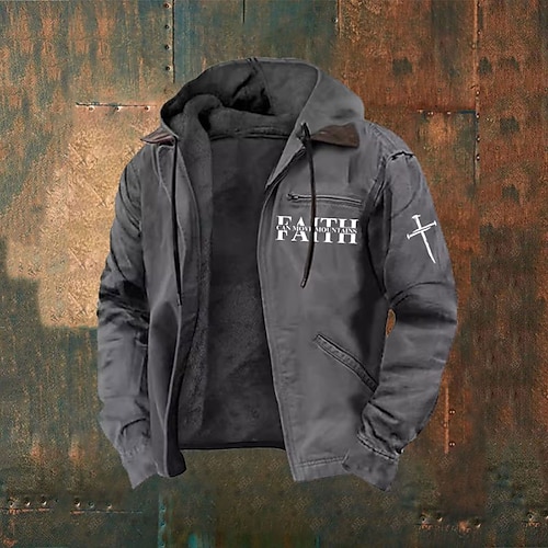 Per uomo Felpa con cappuccio a zip intera Giacca in Pile Felpa con cappuccio in pile Nero Blu marino Marrone Grigio scuro Con Cappuccio Lettera Croce Fede Cerniera Tasca Casuale Quotidiano Uscire