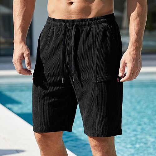 Per uomo Shorts Pantaloncini casual Pantaloncini di velluto a coste Tasca Elastico in vita Semplice Comodità Traspirante Corto All'aperto Vacanza Abbigliamento quotidiano Moda Streetwear Nero Cachi
