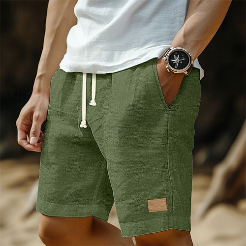 Per uomo Shorts Shorts di Lino Pantaloncini Estivi Shorts da Spiaggia Coulisse Elastico in vita Semplice Comodità Traspirante Lunghezza al ginocchio All'aperto Casuale Quotidiano Vacanza Moda Blu Nero