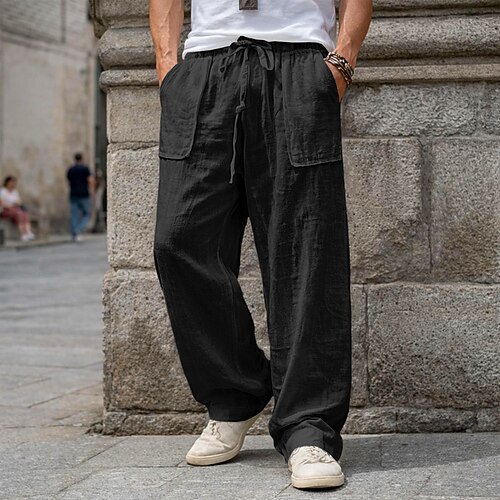 Per uomo Pantaloni di Lino Pantaloni Pantaloni Estivi Pantaloni da Spiaggia Elastico in vita Coulisse Gamba Dritta Semplice Comodità Traspirante Casuale Quotidiano Ferie Vacanza Moda Nero Bianco