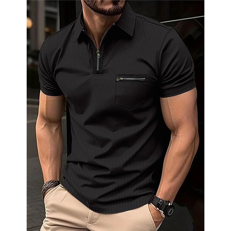 Men's Waffle Polo Shirts Zip Polo Outdoor Sports Lapel Quarter Zip Short Sleeve Fashion Modern Plain Zipper Pocket Summer Regular Fit Black White Navy Blue Beige Gray Waffle Polo Shirts