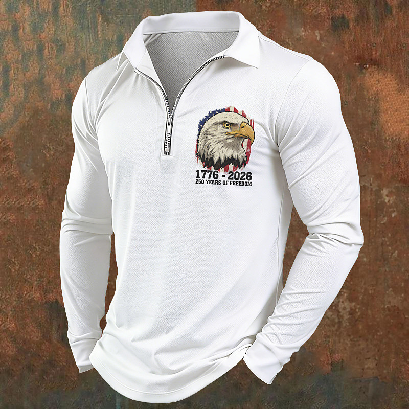 American Independence Day Men's Eagle Polo Polo Shirts Zip Polo Long Sleeve Polo Shirts Quarter Zip Sports Fashion Casual Daily Outdoor Vacation Half Zip Print Spring Fall White Blue