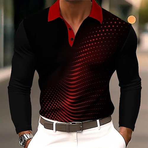 Herren Geometrisch Abstrakt Polo Langarm Polo-Shirts Revers Lässig Geschäft Alltagskleidung 3D-Druck Knöpfe Frühling Herbst Blau Schwarz Rote