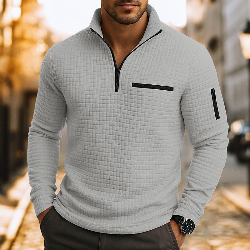 Men's Quarter Zip Polo Golf Shirt Daily Holiday Quarter Zip Long Sleeve Fashion Modern Plain Spring Fall Regular Fit Black White Wine Red Camel Light Grey Quarter Zip Polo