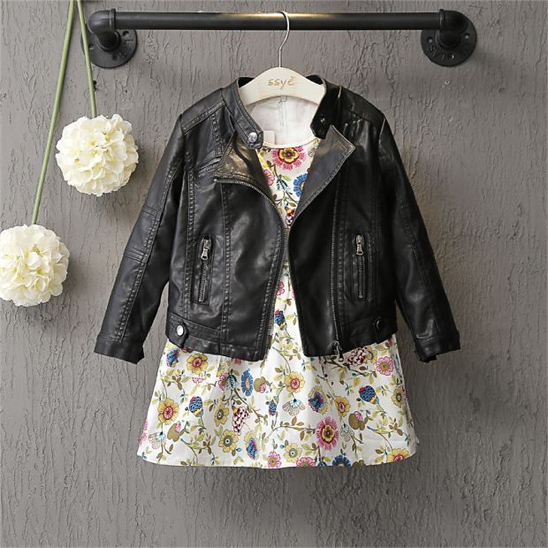 Kids Girls' Black Leather Jacket Jacket Solid Color Fashion Zipper Pocket Waterproof Windproof Outdoor Coat Outerwear 4-12 Years Fall Black