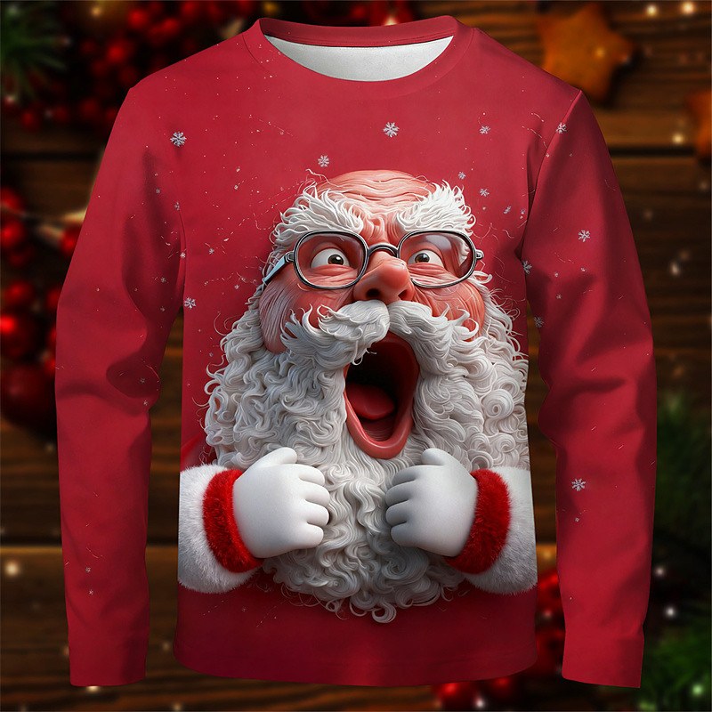 Christmas Boys' 3D Santa Claus T shirt Tee Long Sleeve Spring Fall Fashion Basic Kids 4-12 Years Crew Neck Outdoor Casual Daily Regular Fit