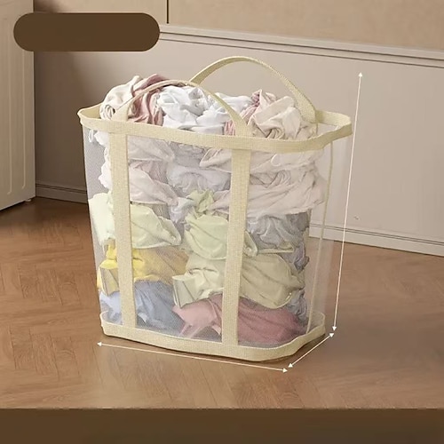 cesto portabiancheria pieghevole in rete traspirante con manici rinforzati – contenitore rettangolare pieghevole per bagno, armadio, dormitorio, viaggio generi alimentari, tessuto resistente,
