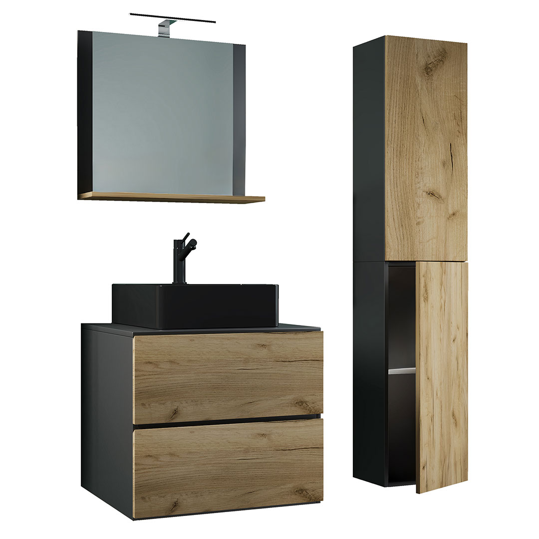LendasLBL Badmöbelset 4 Teile anthrazit, Eiche dekor.