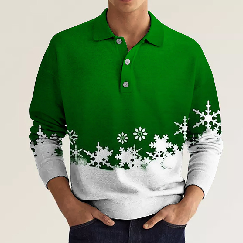 Christmas Men's Christmas Scene 3D Polo Xmas Golf Graphic Prints Snowflake Turndown Wine Blue Brown Green Gray 3D Print Street Casual Long Sleeve Button-Down Print Clothing Apparel Fashion
