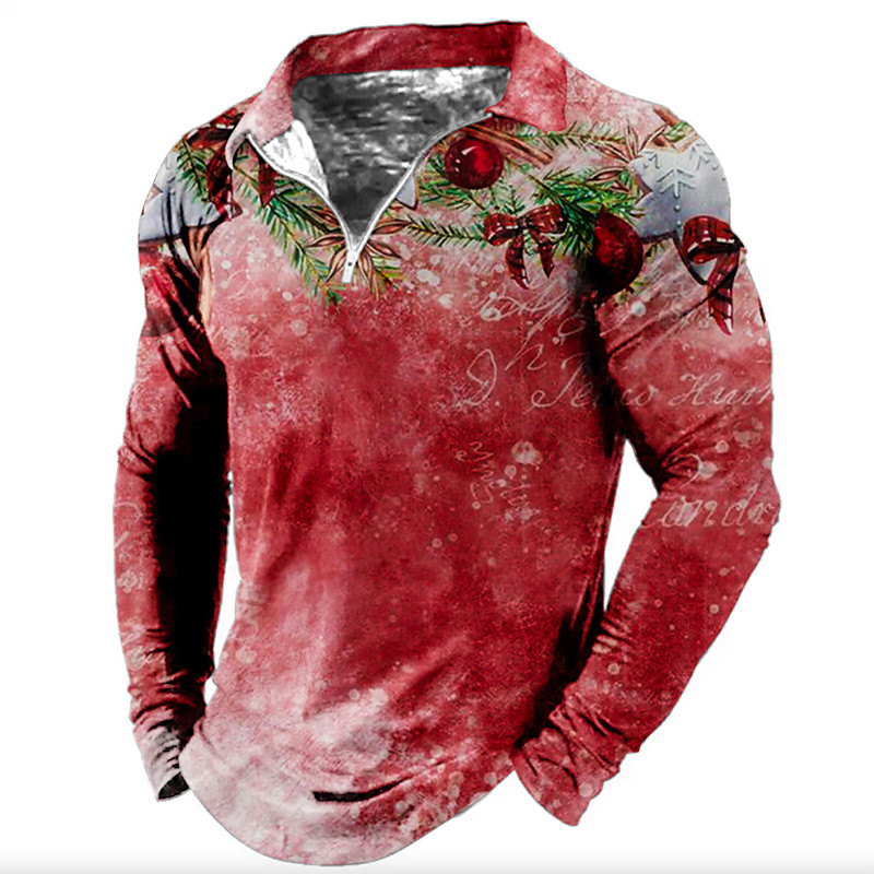 Christmas Men's Christmas tree 3D Zipper Polo Xmas Golf Floral Turndown Red Blue Purple Brown Green 3D Print Street Casual Long Sleeve Zipper Print Clothing Apparel Fashion Designer Casual