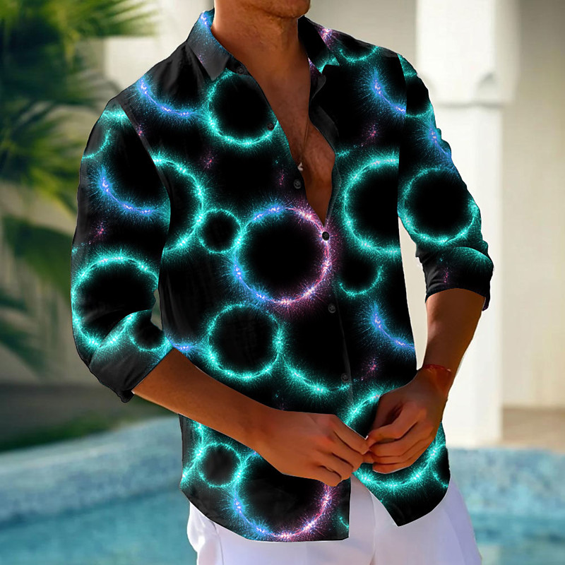 Men's Geometric Circle Neon Glow Shirt Button Up Shirt Casual Dress Shirt Long Sleeve Fashion Casual Vacation Daily Streetwear Summer Spring Turndown 3D Print Collared Shirts Red Blue Orange Green