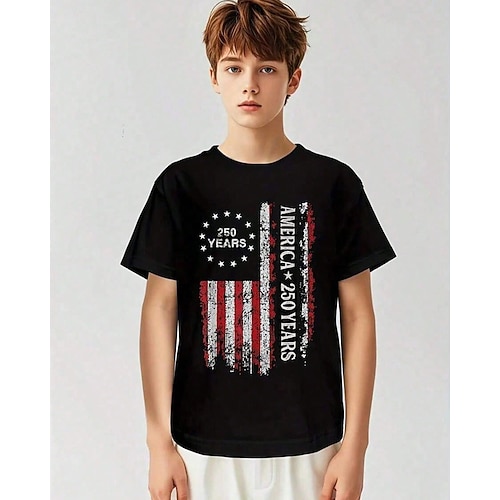100% Cotone Bambini Ragazzi Nero Bianco Grafico Bandiera USA 250° anniversario Maglietta Blusa Girocollo Manica Corta All'aperto Abbigliamento Quotidiano Moda Streetwear Designer Stampa Estate