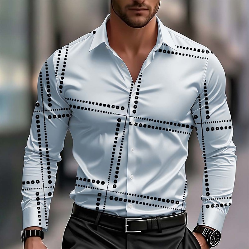 Men's Geometric Pattern Abstract Art Shirt Satin Shirt Dress Shirt Long Sleeve Fashion Casual Vacation Dailywear Summer Spring Fall Turndown 3D Print Button Up Shirts Blue White Pink Red Green