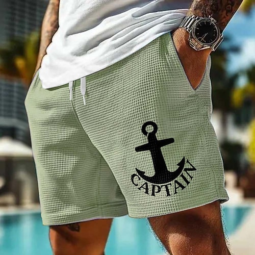 Herren Druck Anker Waffel-Shorts Sweat-Shorts Freizeitshorts Mittlere Taille Modisch lässig Urlaub Joggen Trainieren Strukturiert Elastischer Kordelzug in der Taille Shorts mit Taschen Designer