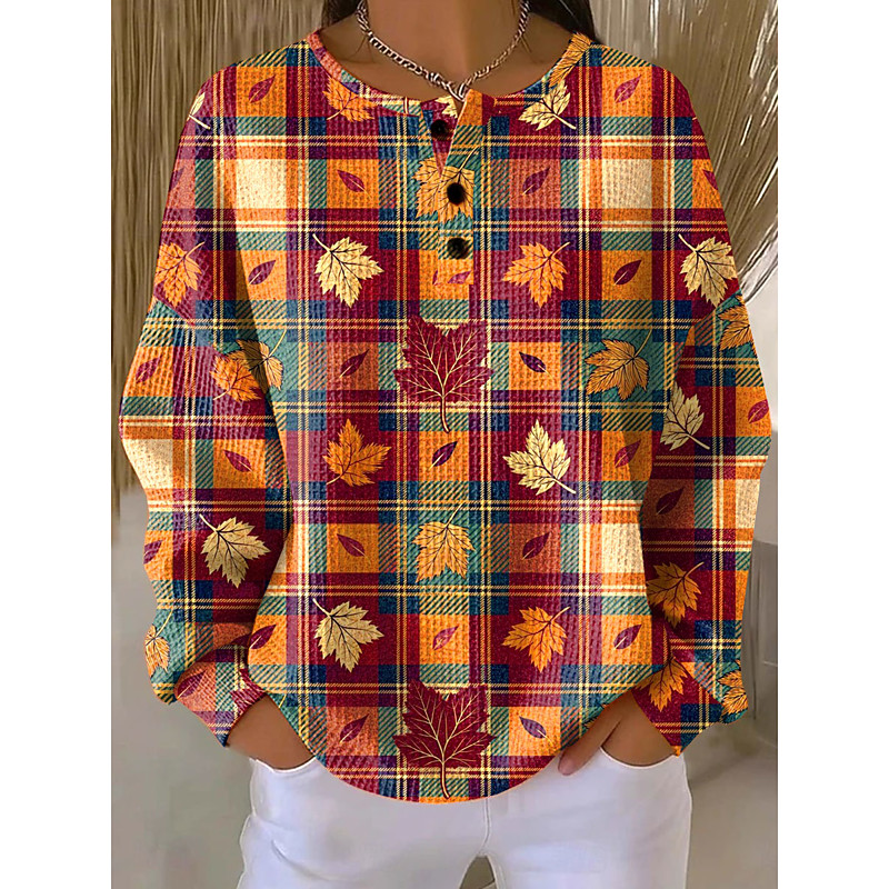 Women's Pullover Sweatshirt Floral Graphic Geometric Vintage Casual Long Sleeve Crew Neck Regular Tops Street Dailywear Casual Buttons Print Blue Light Blue White Orange Spring Fall Winter