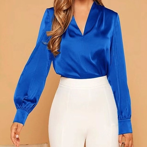 Per donna Camicia Blusa Semplice Elegante Vintage Casual Manica Lunga Scollo a V Top Regolari Quotidiano Ferie Uscire Arricciato Nero Vino Verde militare Blu Marrone Estate Primavera Autunno