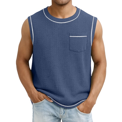 Per maschio Canotta a nido d'ape Canotta Gilet Canottiera Senza Maniche Girocollo Estate Semplice Moda Classico Casual Tasca Casuale Palestra Streetwear Nero Verde chiaro Blu scuro Maglietta Top per