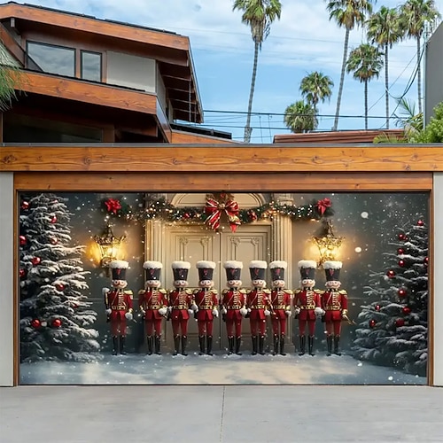 Natale arazzo Copertura per porta del garage Grande appeso Regalo Soldati di noce Carino 3D Da serata All'aperto Vacanze Sfondi di ripresa Yarda Arredamento per la casa