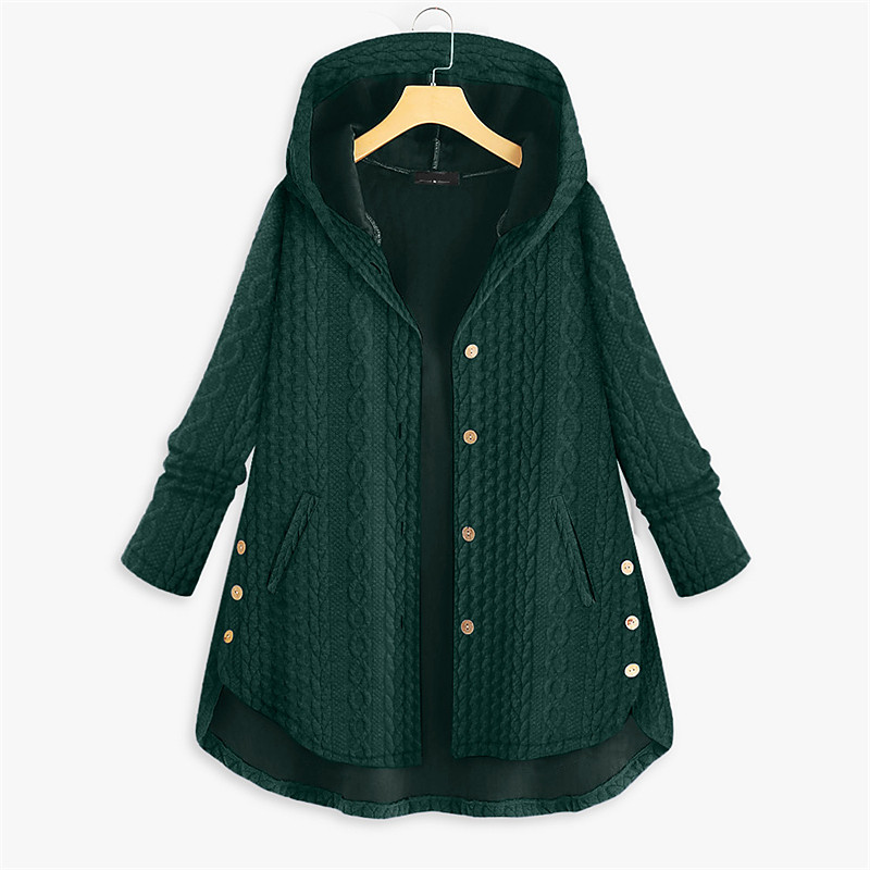 Women's Plus Size Parka Button Pocket Plain Outdoor Causal Long Sleeve Hooded Regular Winter Fall Dark Green Dark Blue Red L XL XXL 3XL 4XL