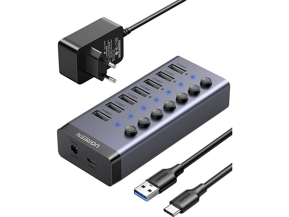 Ugreen multifunctional HUB 7in1 USB Type C - 7x USB Type A 3.0 PD DC 12V gray (CM481)