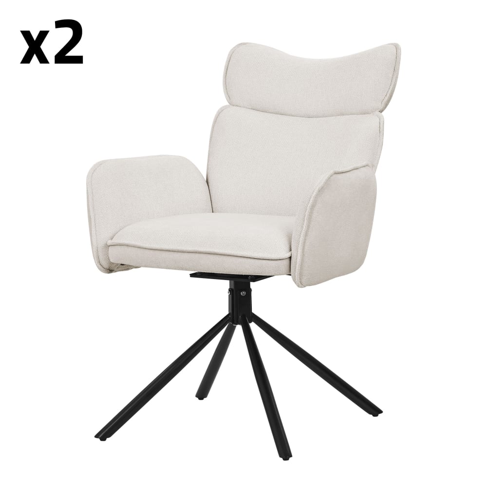Set di 2 sedie da scrivania beige girevoli 360° braccioli e schienale