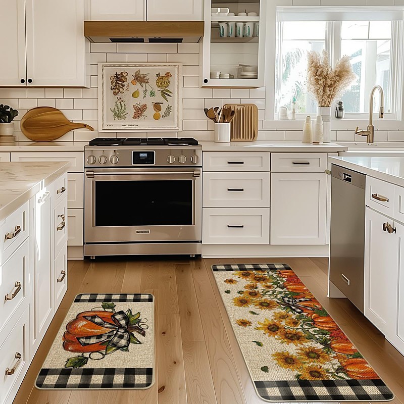 Fall Autumn Pumpkin Linen Mats Set - Absorbent, Oil-Resistant Kitchen Entryway Door Mats, 2-Piece Set For Thanksgiving