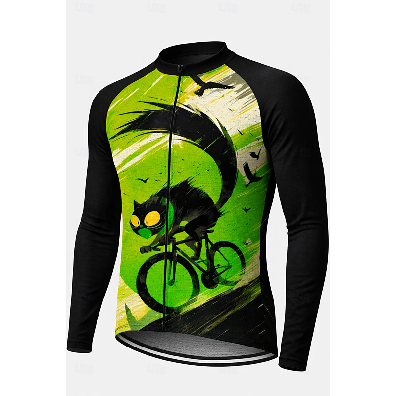 Men's Cycling Jersey Downhill Jersey Cat Character Contrast Color Long Sleeve Bike Tee Tshirt Jersey Compression Clothing with 3 Rear Pockets Mountain Bike MTB Road Bike Cycling UV Sun Protection