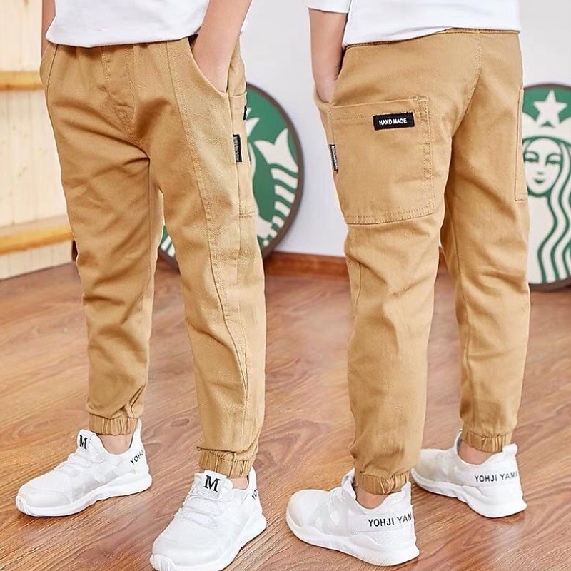 Boys 3D Solid Colored Pants Spring Fall Active Basic Kids 3-13 Years Casual Daily Regular Fit