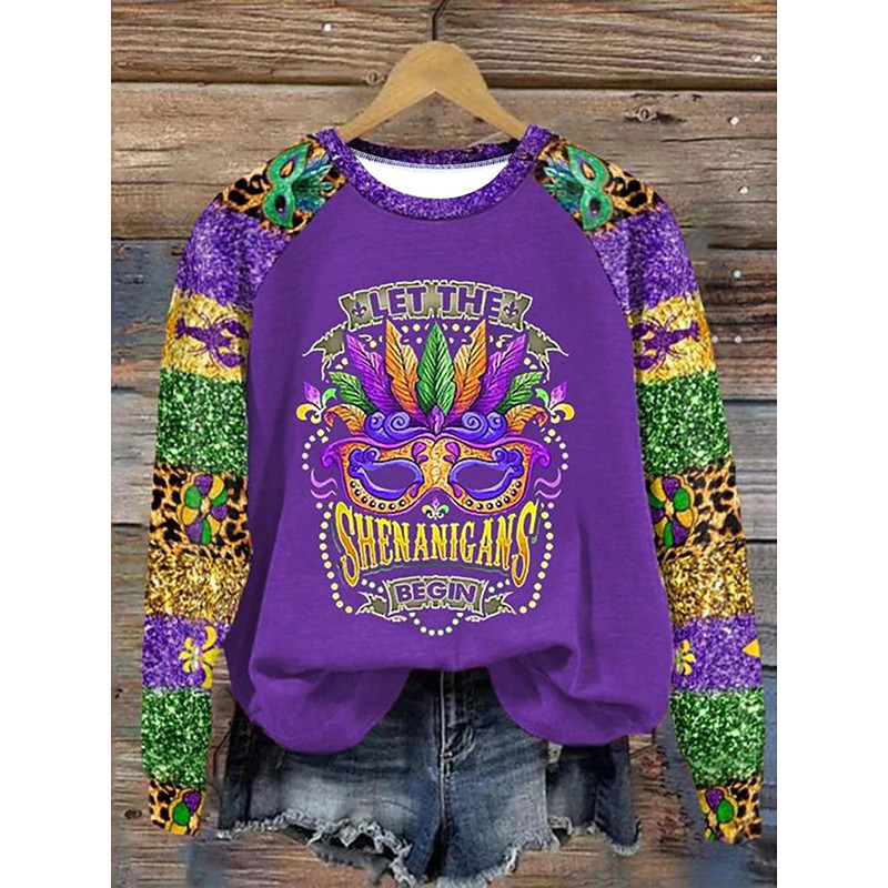 Carnival Women's Pullover Sweatshirt Graphic Fashion Casual Long Sleeve Crew Neck Regular Tops Street Dailywear Print Purple Green Spring Fall Winter