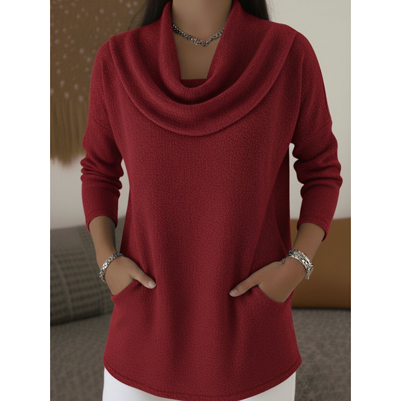 Women's Blouse Solid Color Stylish Casual Long Sleeve Cowl Neck Regular Tops Daily Ruched Pocket Red Blue Brown Spring Fall Winter