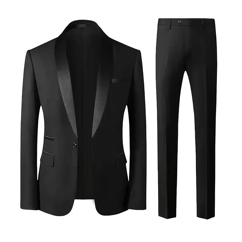 Men's Party Business Wedding Suits Shawl Lapel Black Formal Solid Colored Tailored Fit 2 Piece Single Breasted One-button