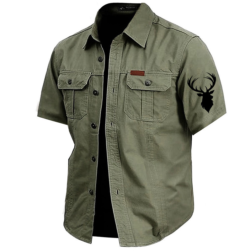 Men's Reindeer Work Shirt Western Shirt Cargo Shirt Short Sleeve Casual Tactical Sports Outdoor WorkWear Summer Spring Turndown Front Two Pockets Cotton Button Up Shirts Army Green Khaki Dark Blue