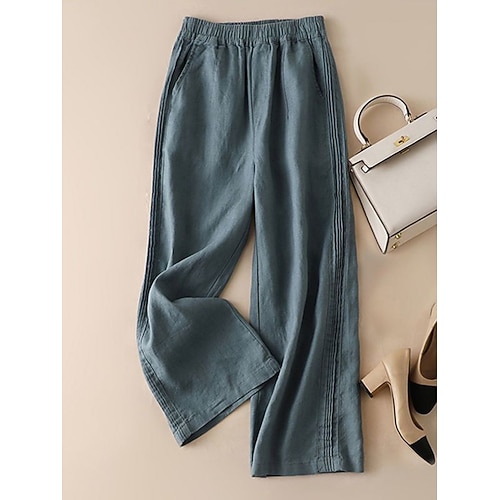 Per donna Pantaloni in cotone e lino Gamba larga Chinos Vacanza Essenziale Casual Lunghezza intera Vita Alta Semplice Tasca Fascia Elastica Comodo Morbido Confortevole Elasticizzato All'aperto