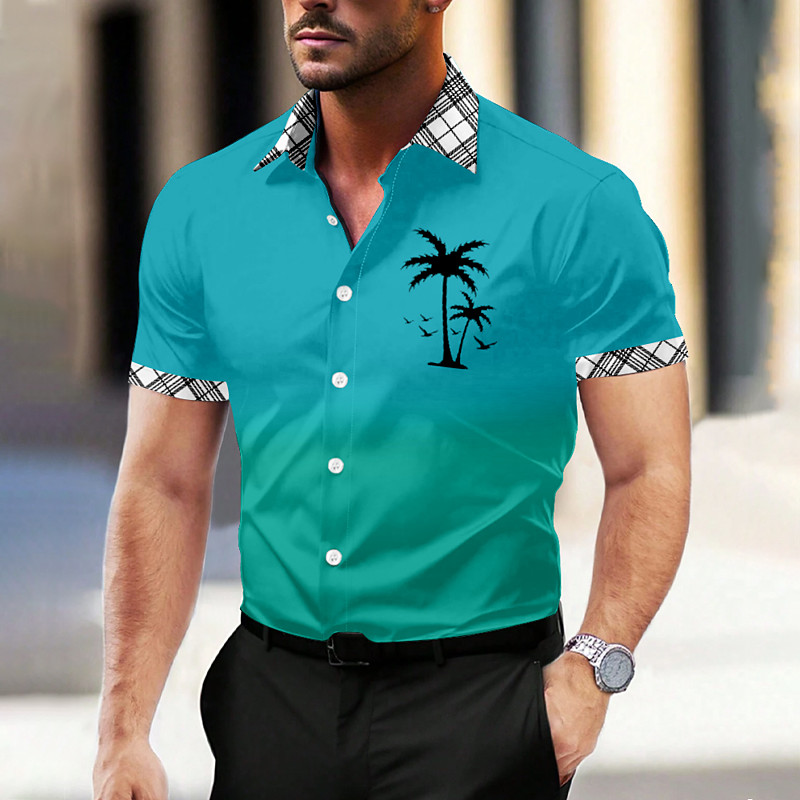Men's Shirt Dress Shirt Coconut Tree Holiday Yellow Blue Green Gray Short Sleeve Turndown Summer Clothing Apparel Buttons