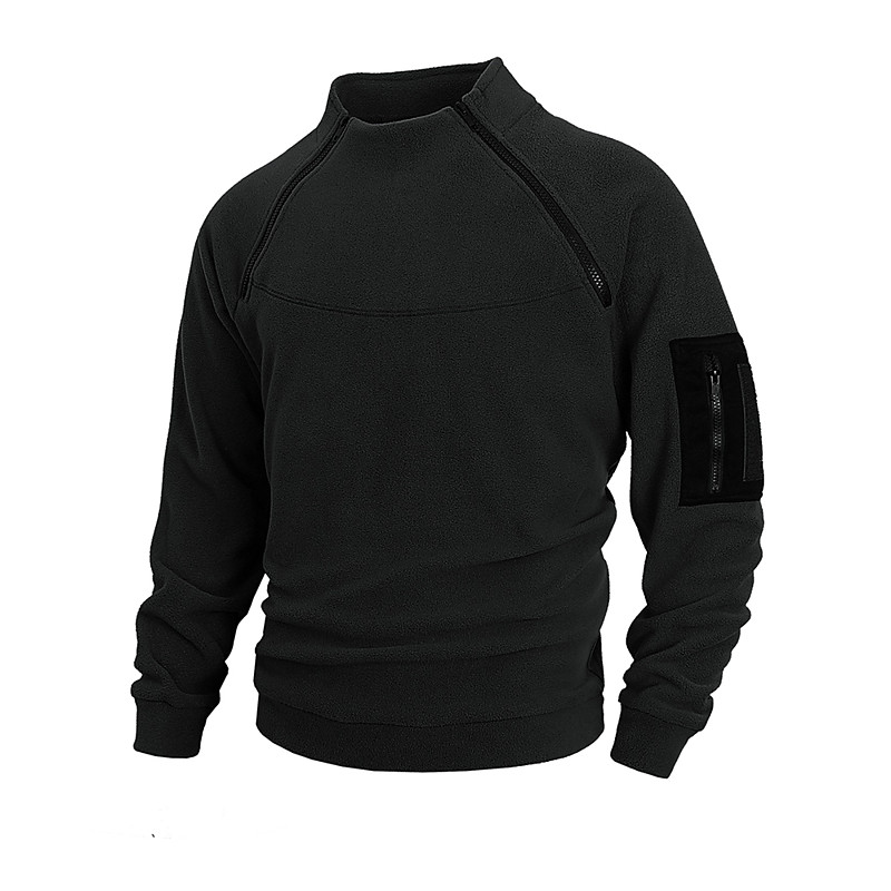 Men's Casual Sweatshirt Lounge Top Zip Up Pocket Long Sleeve Top Athleisure Solid Colored Warm Gym Hiking Workout Sportswear Activewear Dark Grey Black Army Green