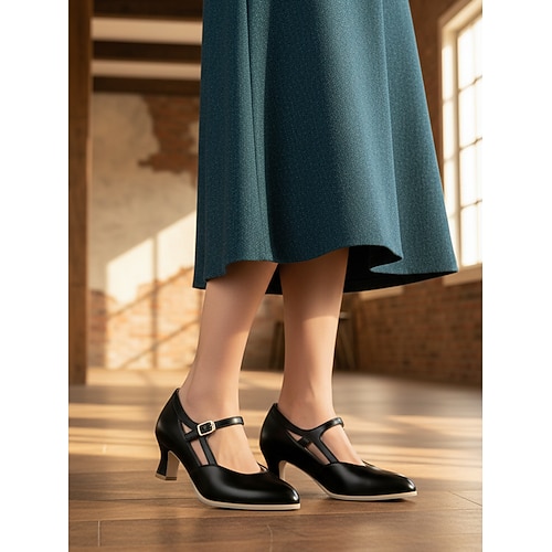 Scarpe da ballo da donna a pois neri con tacco basso e cinturino alla caviglia - scarpe da ballo professionali per ballerini di latino e swing