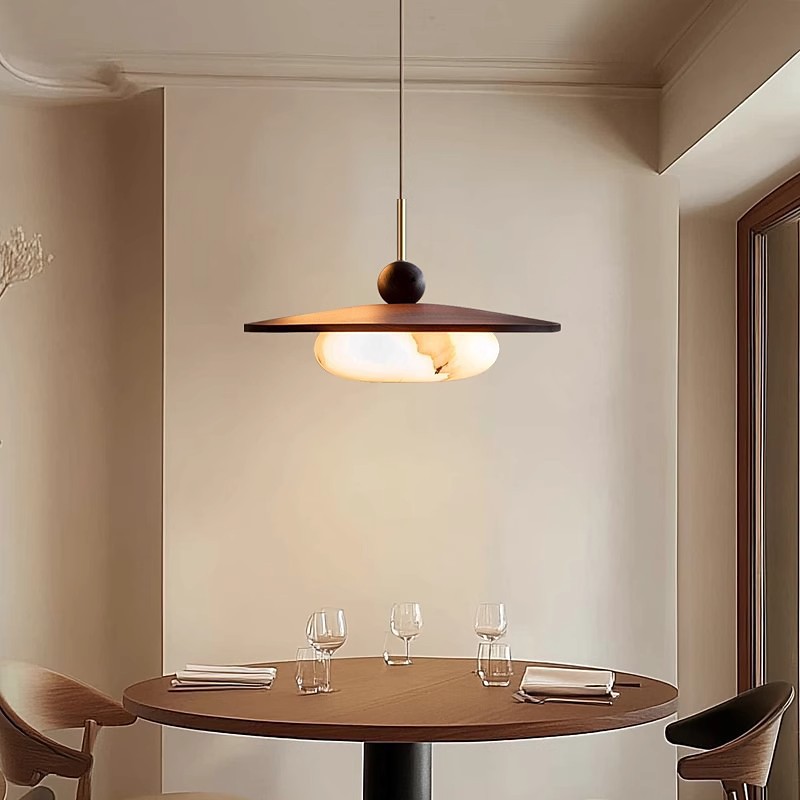 Chandelier 34cm Marble Wooden Wabi-sabi Style Bed and Breakfast Lamp, Modern Eye Protection Lamp for Living Room, Simple Tea Room Decoration Lamps 110-240V