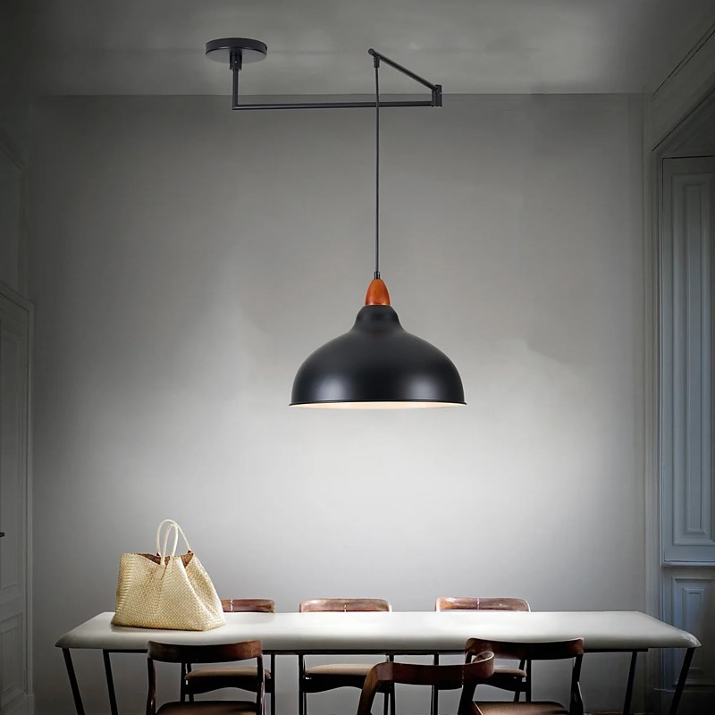 LED Pendant Light Industrial Pendant Light Fixture Swing Arm Hanging Light, Adjustable Dome Ceiling Pendant Light for Dining Room Living Room in Black/White