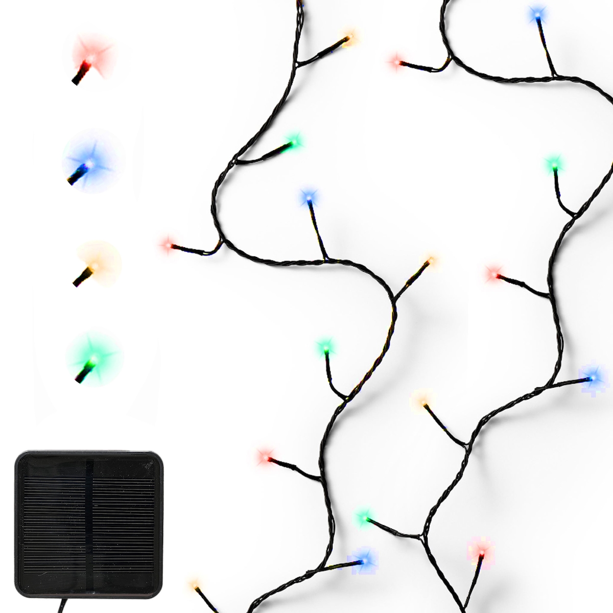 Lumineo LED Solar Lichterkette 9m Schwarz 8 Twinkle-Effekts 120 LEDs Bunt