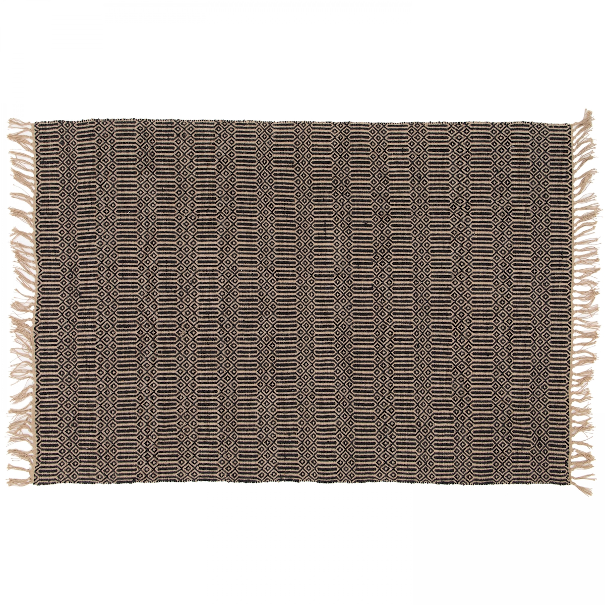 Oviala Business Handgewebter Fransenteppich aus natürlicher Jute schwarz 160 x 230 cm