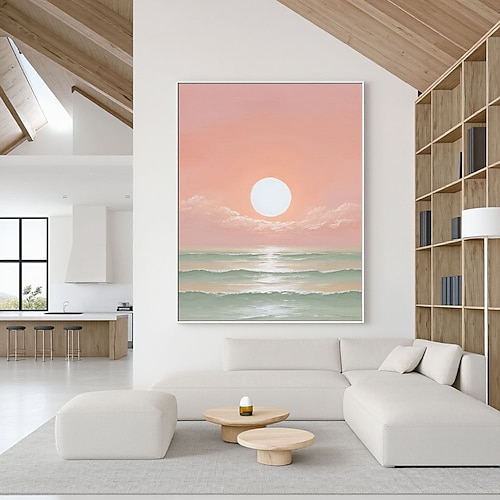 Handgefertigtes Ölgemälde auf Leinwand, Wandkunst, Dekoration, moderne abstrakte Meer-Sonnenaufgang-Landschaft für Wohnkultur, gerolltes, rahmenloses, ungedehntes Gemälde