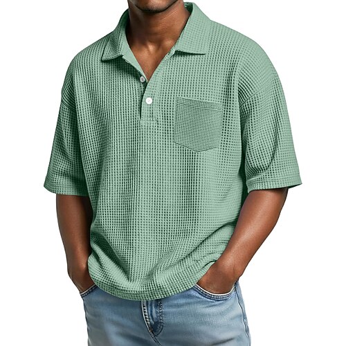Per uomo Maglia da golf Polo a Maglia Waffle Casuale Affari Classico Manica Corta Moda Moderno Tinta unica Semplice Bottoni Estate Primavera Tutte le stagioni Vestibilità regolare Nero Bianco Verde