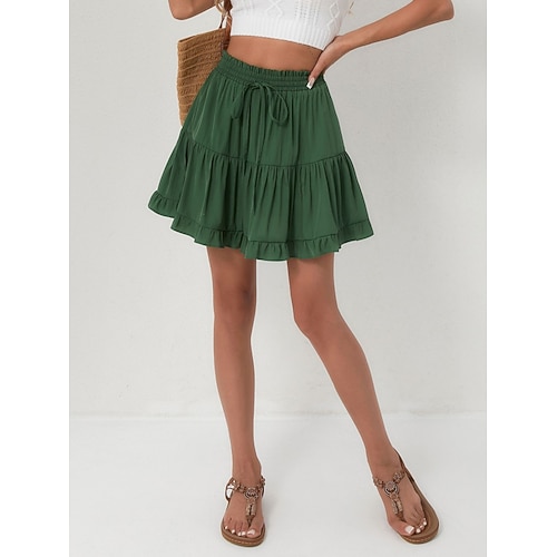 Per donna Gonna da vacanza Moda Casual Mini Vita Alta Gonne Semplice Coulisse Volant Elasticizzato Quotidiano Streetwear Nero Bianco Arancione Marrone Estate Poliestere