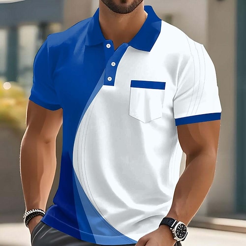 Herren Farbblock Polo Kurzarm Polo-Shirts Hemden mit Kragen Business-Casual Outdoor Athleisure Alltagskleidung 3D-Druck Knöpfe Frühling Sommer Blau Rote Purpur