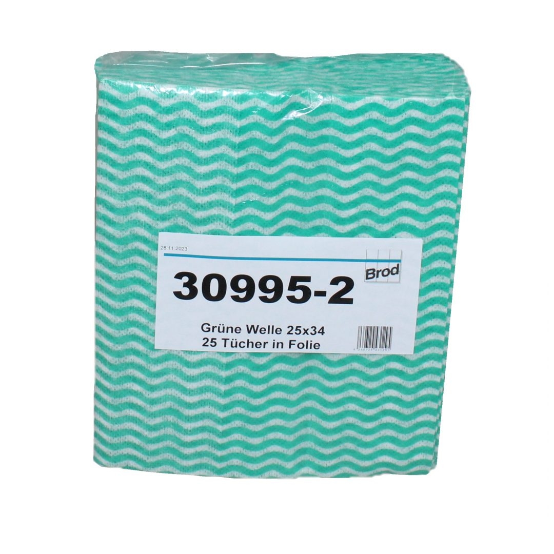Grüne Welle, Universaltücher mit Textilcharakter, grün-weiß, 55 % Viskose, 45 % Polyester, ca. 25x34 cm, 25 Tücher
